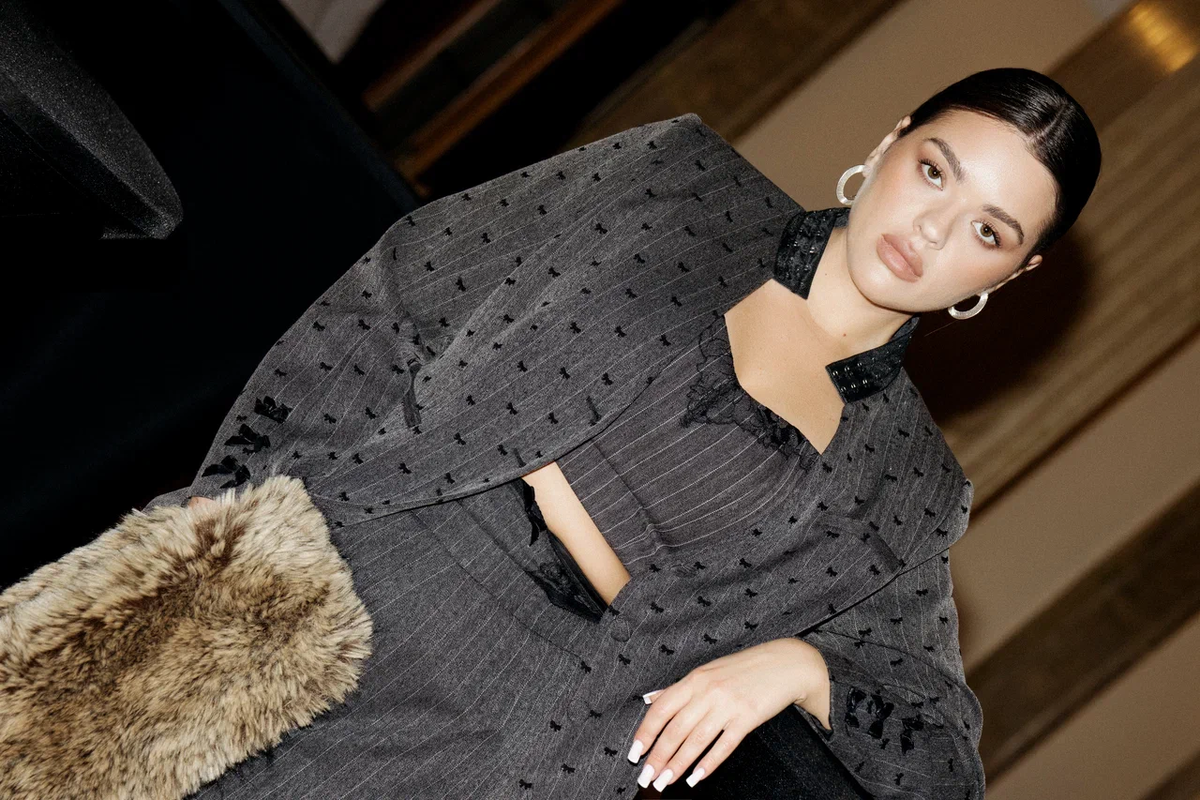 Укороченный жакет с миниатюрными бантиками будто создан для того, чтобы подчеркнуть талию и придать образу ту самую мягкую женственность, которую невозможно подделать.