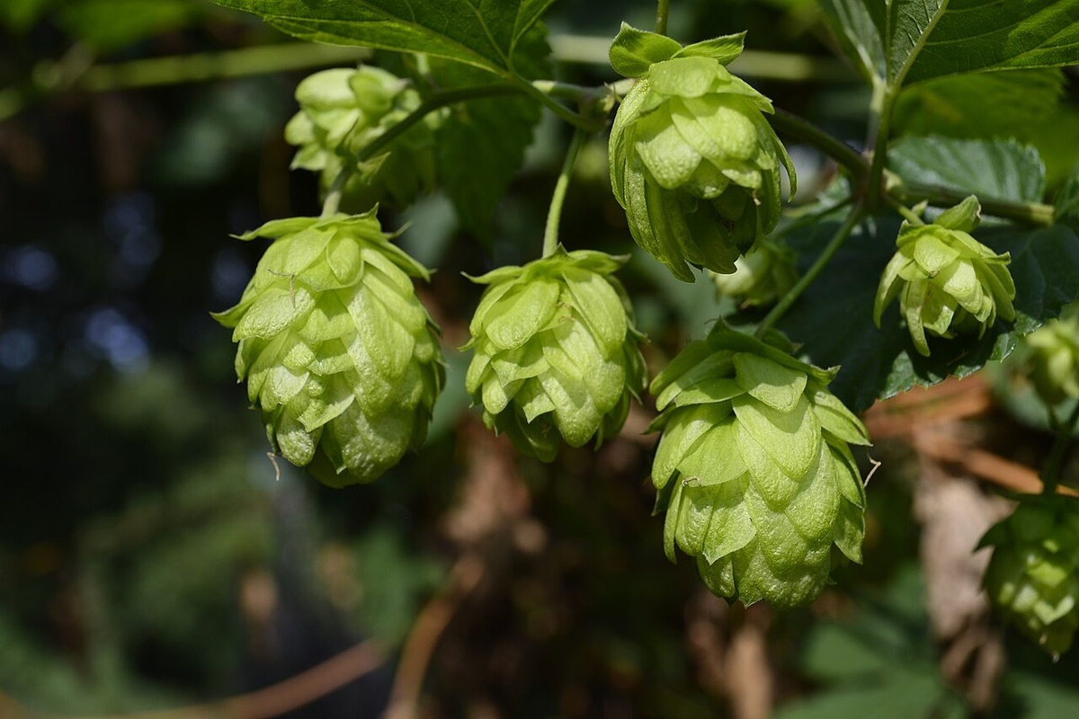 О плодах и шишках. Хмель — двудомное растение. Это значит, что мужские и женские цветки образуются на разных особях. Мужские цветки собраны в метелки, женские — в головчатые колосья по 40–60 штук. Во время цветения женское соцветие выглядит как маленький шарообразный желтовато-зеленый колосок. Цветки сидят в пазухах перепончатых чешуек. По окончании цветения чешуйки разрастаются, образуя соплодие — хмелевую шишку. Когда плоды созревают, а происходит это в июле — сентябре, шишка желтеет. Однако собирают их раньше, в самом начале созревания. Плоды-орешки только мешают, поскольку содержат жирные кислоты, которые могут испортить вкус пива и других приготовляемых с хмелем напитков. На плантациях разводят исключительно женские растения хмеля и размножают их вегетативно. В результате на растениях образуются пустые шишки, пивоваров интересуют именно они.