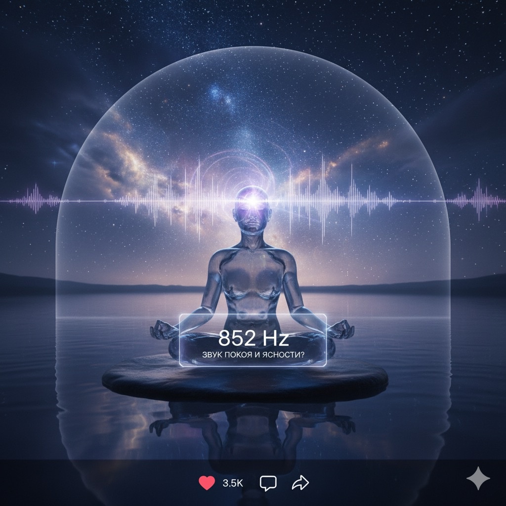 - В соцсетях (особенно на X/Twitter, TikTok и YouTube) эту частота действительно “нашли” недавно — посты о ней взлетели в 2024–2025 годах. Люди делятся видео с чистым тоном или музыкой на 852 Гц, описывая, как это “выключает мозг” или снимает тревогу за минуты. Например, один пост на испанском собрал тысячи лайков: “Мои мысли просто исчезают, магия!”