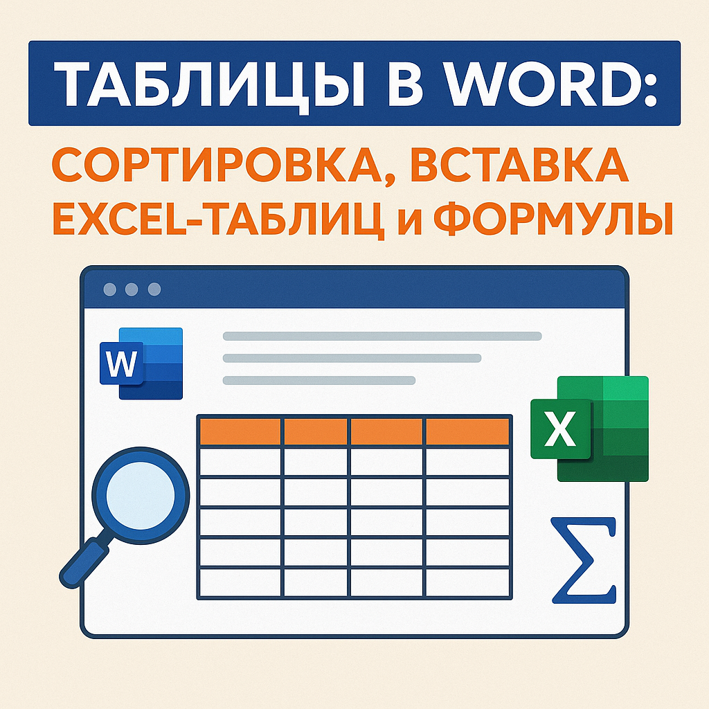 Таблицы в Word: сортировка, вставка Excel-таблиц и формулы. В третьей части мы рассматриваем расширенные возможности работы с таблицами в Microsoft Word. Вы научитесь сортировать данные в таблицах Word по различным столбцам, интегрировать таблицы Excel в документ для выполнения сложных расчётов, а также использовать формулы непосредственно в таблицах Word (например, суммировать значения в столбце). Эти приёмы помогут вам не только оформлять данные, но и анализировать их прямо в Word.