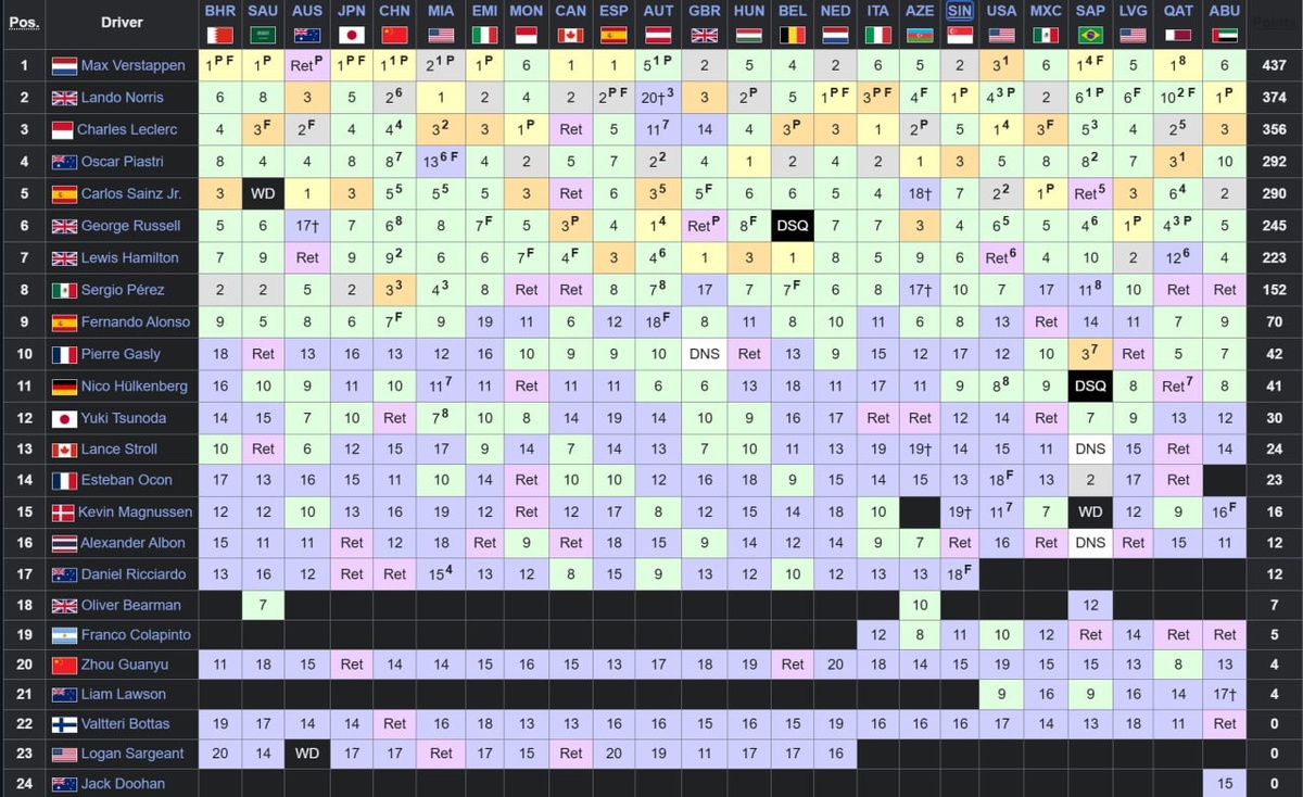 В ответ на пост В прошлом году, несмотря на то, что у Макса уже был не самый быстрый болид, на последних 5 этапах он смог заработать больше всех очков из лидирующей тройки(2 фото). В конце 2024 года на 4 уикендах лучшей машиной был Макларен и на одном Мерседес. В этом же году пока все выглядит так, что лучшая машина будет преимущественно у Макса. Эта информация, конечно, ничего особо не даёт, единственное, что можно проследить, как Оскар в прошлом году точно так же сдал во второй половине сезона. Если Пиастри везде, кроме одной гонки, приедет 2, а Ферстаппен выиграет всё, то этого хватит, чтобы Макс стал чемпионом. За последние 4 этапа Макс уже заработал 101 очко из 108 возможных. Если такая тенденция сохранится и дальше, то всё возможно...