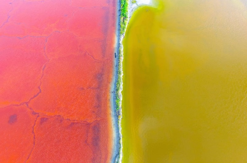 - Водоросли Dunaliella salina. На самом деле они зелёные, но в условиях жёсткого солевого стресса начинают производить каротиноиды — те самые пигменты, что делают морковку оранжевой, а фламинго — розовыми. Вот они-то и дают тот самый невероятный, конфетно-розовый цвет.