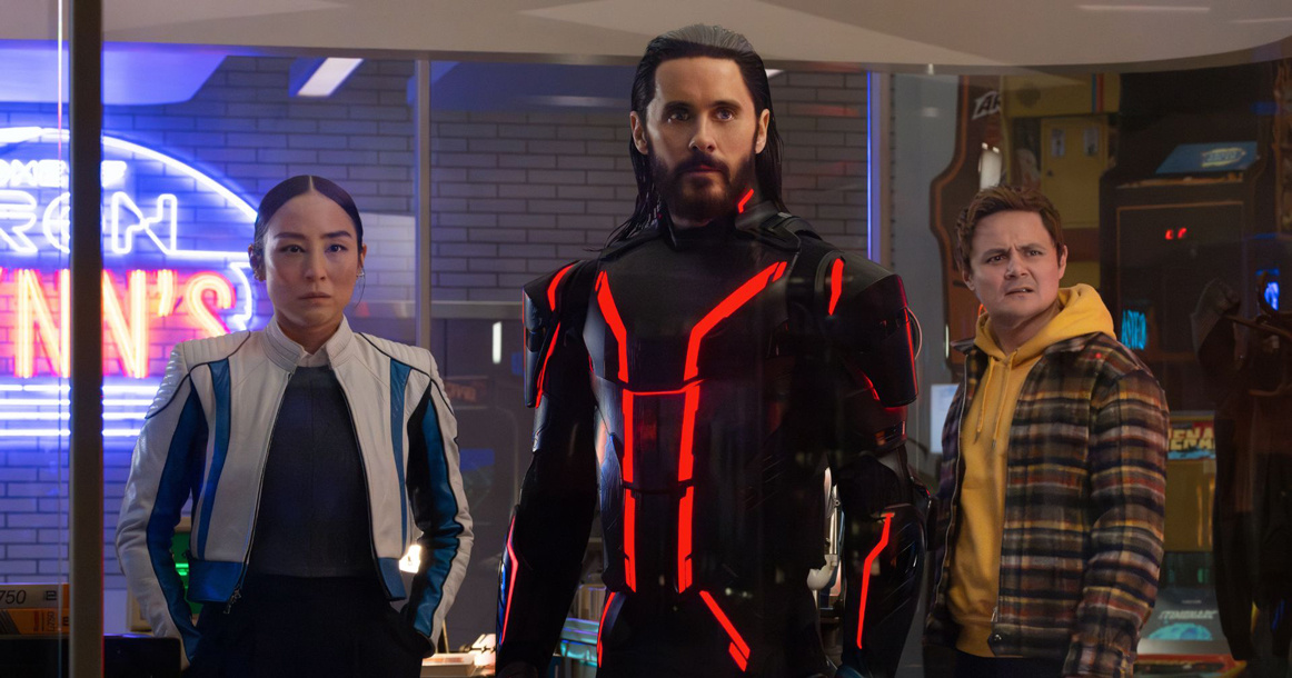 Сюжет проще пареной репы. Две корпорации дерутся за некий «код постоянства». Одна, во главе с милой, но безликой азиатской дамой (Грета Ли), хочет печатать на 3D-принтере еду для голодающих. Другая, под руководством картонного злодея (Эван Питерс), мечтает захватить мир с помощью виртуального оружия. А посередине — взбесившийся искусственный интеллект Арес в исполнении Джареда Лето, который внезапно понимает, что «капли дождя — это красиво», и начинает философствовать, как студент на первой сессии.