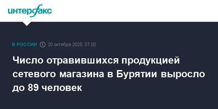 В Бурятии Минздрав республики держит под контролем ситуацию с массовым отравлением В Бурятии зафиксировано массовое отравление после покупки продуктов в сетевом магазине. Подтверждено 89 случаев, включая 49 детей, 11 сальмонеллезов. 55 человек госпитализированы, состояние большинства стабильное, один пациент в реанимации с положительной динамикой. Возбуждено уголовное дело, ведется расследование. 📢 Читать далее: t-nw.ru 📸 Фото: www.interfax.ru 🔔 Подписывайтесь на нас: t_nw_press