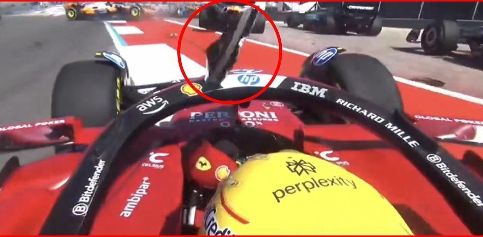* Удар пришёлся прямо в «Halo» — защитную дугу над головой пилота, установленную в Формуле-1 с 2018 года и призванную предотвратить несчастные случаи.