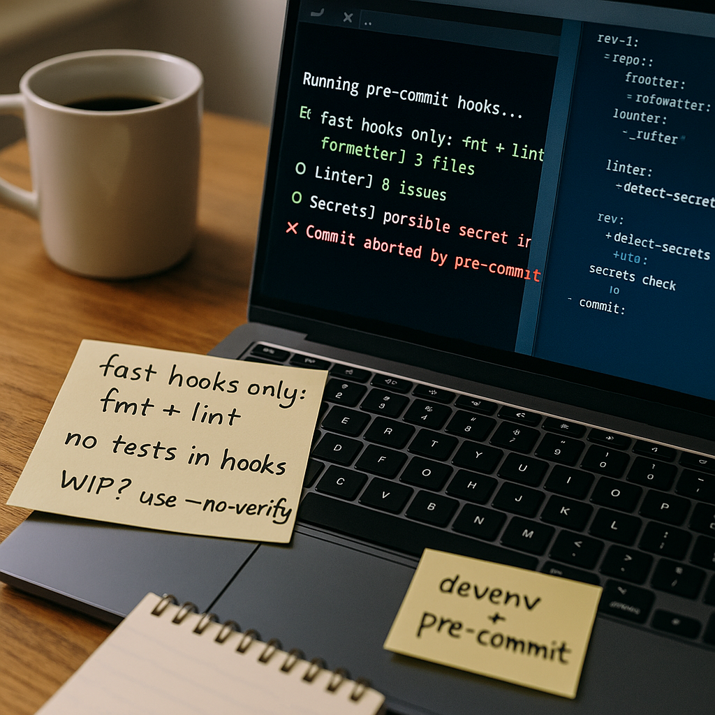 π§ββοΈ Π Π°Π²ΡΠΎΡ ΡΡΠ°ΡΡΠΈ ΡΠΎΠ²Π΅ΡΡΠ΅Ρ ΠΈΡΠΏΠΎΠ»ΡΠ·ΠΎΠ²Π°ΡΡ devenv (Π½Π° Π±Π°Π·Π΅ Nix) β ΡΠΈΡΡΠ΅ΠΌΡ Π΄Π»Ρ ΠΎΠΏΠΈΡΠ°Π½ΠΈΡ ΠΎΠΊΡΡΠΆΠ΅Π½ΠΈΠΉ, Π³Π΄Π΅ pre-commit Π½Π°ΡΡΡΠ°ΠΈΠ²Π°Π΅ΡΡΡ ΡΠ΅Π½ΡΡΠ°Π»ΠΈΠ·ΠΎΠ²Π°Π½Π½ΠΎ.