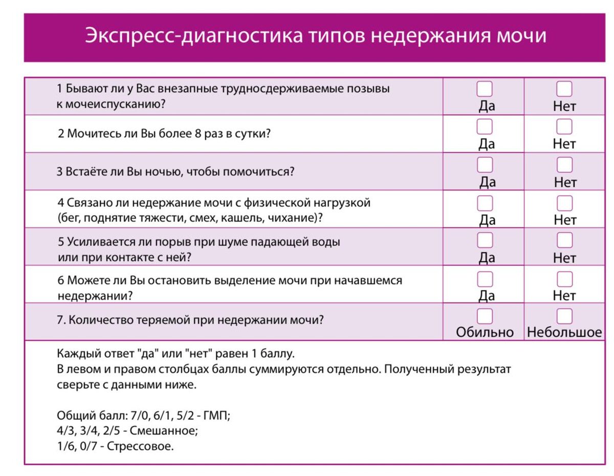 Тест. Диагностика причин недержания мочи‼️