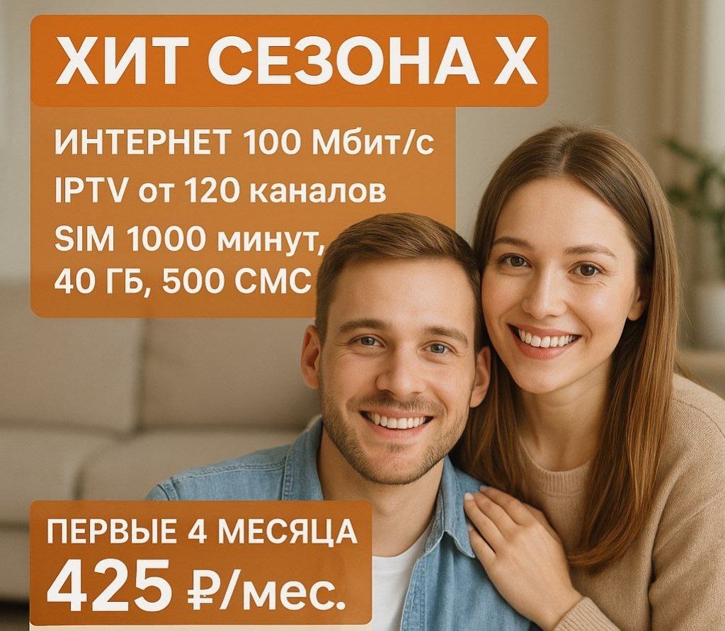 Ищете идеальный тариф на интернет? Ростелеком предлагаем вам лучший выбор: 🛜 Скорость до 100 Мбит/сек 🖥 телевидение с 120+ каналами 📋SIM-карта: 1000 минут + 40 Гб и 500 SMS. 💸 Первые 4 месяца всего за 425 рублей! 📲 Подключение по номеру: 89910681771! Не упустите свою выгоду!