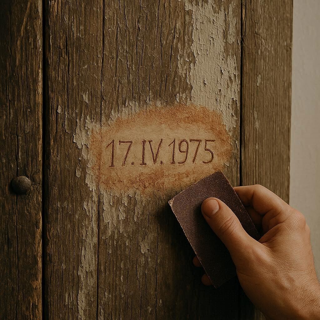 Идея пришла внезапно, когда он разглядывал старую, дощатую дверь в своей прихожей - единственную, что он еще не выбросил во время ремонта. На внутренней стороне, на высоте роста, он заметил несколько царапин. Присмотрелся. Это были не случайные повреждения. Кто-то старательно выводил что-то острым предметом. Он стер пыль, и сердце его екнуло. Там, под наслоениями краски, угадывались цифры. Он побежал в гараж за шкурой и зачистил небольшой участок. Проступила дата: «17.IV.1975». А ниже небрежно начертанное сердце.