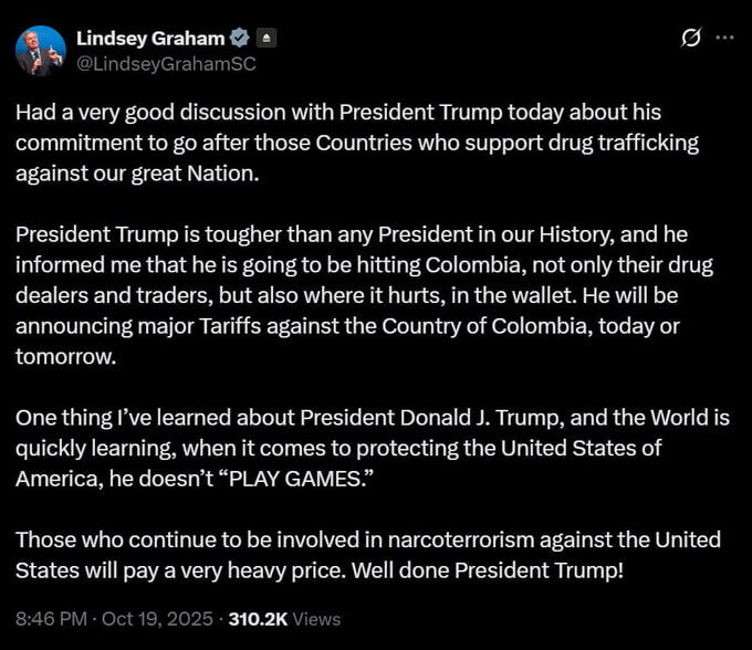 Trump slapping 'MAJOR TARIFFS' on Colombia
