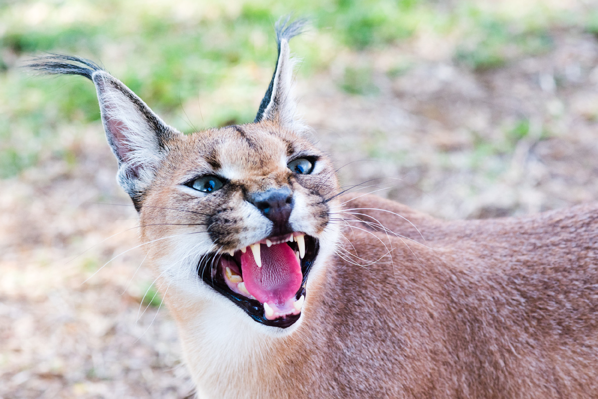 Интересный факт: каракал не мяукает, как домашняя кошка. Он издаёт звуки, больше похожие на птичье чириканье, шипение и рычание. А ещё он может реветь — и это настоящий рёв, способный напугать соседей и вызвать полицию.
