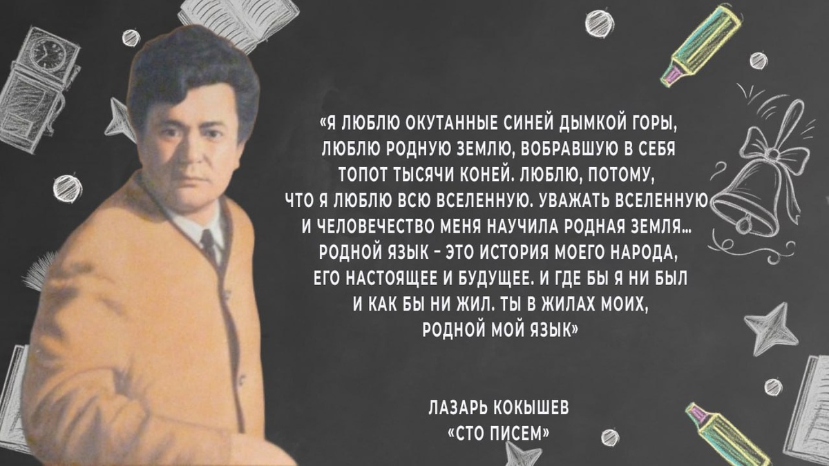 Сегодня в Республике Алтай отмечается День алтайского языка — праздник, неразрывно связанный с именем легендарного писателя и поэта Лазаря Васильевича Кокышева. Алтайский язык — это не просто звуки и буквы, это целая вселенная смыслов, традиций и культурных богатств. В этот день мы чествуем язык, который объединяет народ, хранит мудрость веков и передаёт её новым поколениям. Писатель Лазарь Васильевич Кокышев внёс огромный вклад в развитие алтайской литературы и сохранение родного языка. Кокышев вырос в семье крестьянина и рано понял, какую важную роль играет родной язык и культура в жизни народа. Его произведения отличаются глубоким гуманизмом, любовью к народу и тонким чувством прекрасного. Он занимался составлением алфавитов и грамматик алтайского языка, участвовал в составлении письменности на основе кириллицы, переводил классические произведения русской литературы на алтайский язык. Фото: Минобрнауки Республики Алтай #новости 👍Подписывайся на Вести Эл Алтай МАКС | Телеграм