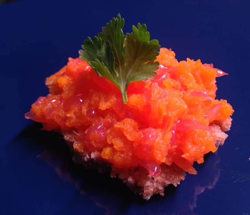 ✔ Тыква сырая (очищенная) - 150 г; ✔ Морковь - 100 г; ✔ Грейпфрут (мякоть без кожуры и пленок) - 150 г (это примерно половина крупного грейпфрута); ✔ Корица молотая - ½ ч. л.; ✔ Ванильный экстракт (жидкий) – пара капель (или по вкусу). Морковь с тыквой потереть на мелкой тёрке, грейпфрут без плёнок просто раздавить вилкой. Можно добавить корицу, ваниль, цедру, орешки и другие безвредные вкусности. Меняйте их местами, находите новые сочетания. Положить на амарантовый (или любой другой альтернативный) хлеб, и сверху листик мяты - практически пирожное! КБЖУ на 100 г - 33/0,9/0,2/8,0. www.vysotamed.ru Рецепт на странице Автор рецепта – Оксана Тищенко Расчёт КБЖУ сделан с помощью Telegram-чат-бота https://t.me/vesipitaniebot © Почтенный возраст Online и Рецепты для диабетиков