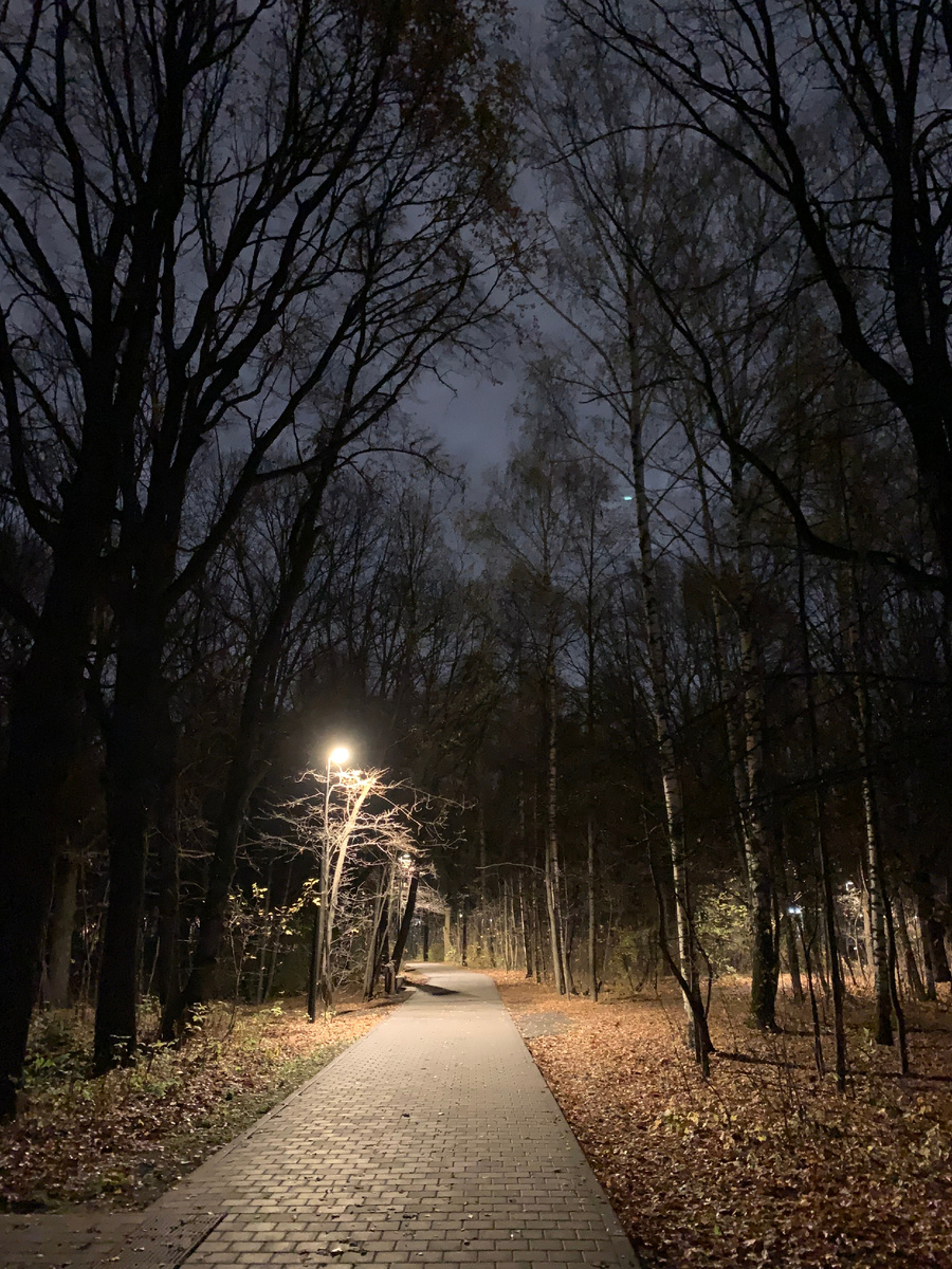 Дело было буквально недавно. Выходные прошли в делах, почти все удалось сделать, и сил куда-то вечером идти уже не было, но принял решение "дожать" себя, ну и ещё около восьми километров протопать. Погода вроде бы нормальная, на несколько часов синоптики обещали, что дождя не будет, а так как темнее рано, то мной было принято решение прогуляться до парка по ночному городу, ну и пофоткать там немного. Пофоткать - это громко сказано, так как на мой старенький смартфон вечерние снимки так себе получаются, но тем интереснее. Как-то говорил, что не совсем согласен с мнением, что фотографирует не техника, а человек. Думаю, что фотографирует техника, человек лишь реализует мысль. Аргумент простой: попробуйте не имея функциональной техники, сделать фото при недостатке света, в движении, сделать рисование светом и так далее. Это извечный вопрос, но мое мнение такое. В общем, пошел. По пути забежал в армейский магазин, отлично пообщался с продавцом. Оказалось, что человек не просо торгует, но и