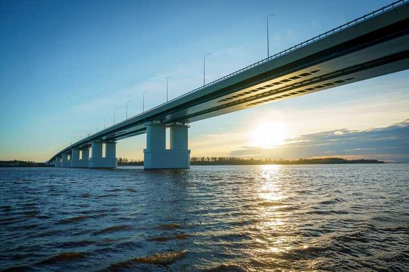 Это широкая четырехполосная переправа, которая соединяет берега и выходит на новую магистраль длиной около 45 километров. По сути, это южный обход Сургута: транзит убирается с городских улиц, грузовой транспорт перестанет проезжать через жилые микрорайоны, а старый мост избавится от постоянной перегрузки. Для жителей это значит меньше шума и выхлопов, а также более предсказуемое время в пути. Контракт на строительство подписали 3 мая 2022 года. Летом техника вышла на объект, а в июле 2022-го в грунт забили первую сваю. Летом 2025 года состыковали пролеты, затем проводились доводочные работы: установка ограждений, освещения, проверки. А осенью движение открыли. Для северных условий, где климат не балует, это быстрый и ровный темп исполнения. Длина пролетных строений — примерно 1,7–1,76 км, количество опор — 16, полос — 4. Пропускная способность — порядка 13–15 тысяч автомобилей в сутки. Этого достаточно, чтобы заметно разгрузить старую переправу и иметь запас на рост трафика. В конструк