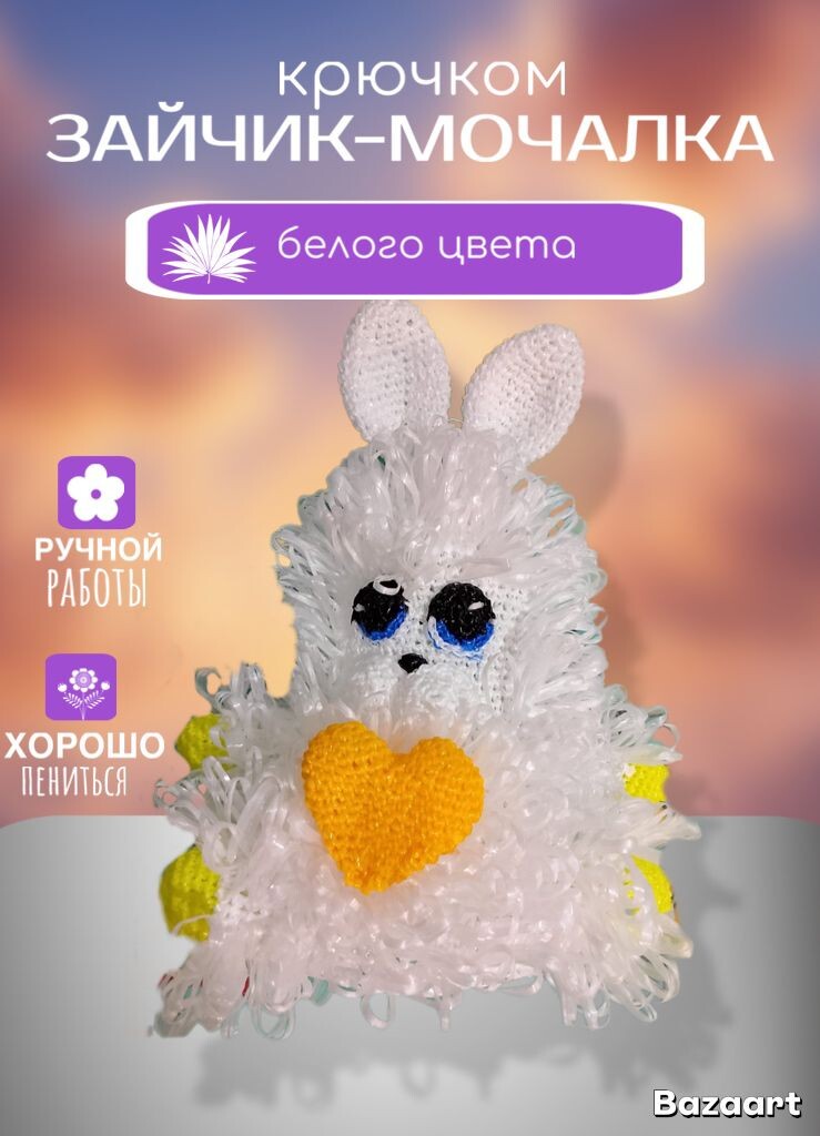 Ушки. - КА 6 ст. - 6 пр. (12) - 12 ст. - 1 ст, 1 пр. (18) - 18 ст. - 5 ст, 1 пр. (21) - 6 ст, 1 пр. (24) - 5 рядов по 24 ст, - 6 ст, 1 уб. (21) - 5 ст, 1 уб. (18) - 18 ст, - 7 ст, 1 уб. (16) - 16 ст. - 6 ст, 1 уб. (14) - 14 ст. Соединяем обе стороны ушка столбиками без накида. Отрезаем нить по-больше. Складываем пополам и сшиваем низ вместе. Глазки. Чёрная пряжа. - КА 6 ст. - 6 пр. (12) - (1 ст, 1 п р) - 3 раза. Далее синяя пряжа. - (1 ст, 1 пр) - 3 раза. Далее чёрная пряжа. По чёрным петлям провязываем соединительные петли. Далее белая пряжа. За задние полупетли провязываем по синим петлям соединительные петли. Далее провязываем 1 петлю СС за полную петлю. Делаем блик на глазки. Оставляем белую нить подлиннее, выводим белую нить на лицевую сторону, пропускаем один столбик и выводим белую нить на левую сторону и так пару раз. Верхние лапки. Жёлтая пряжа. - КА 6 ст. - 6 пр. (12) - 1 ст, 1 пр. (18) - 3 ряда по 18 ст. Б