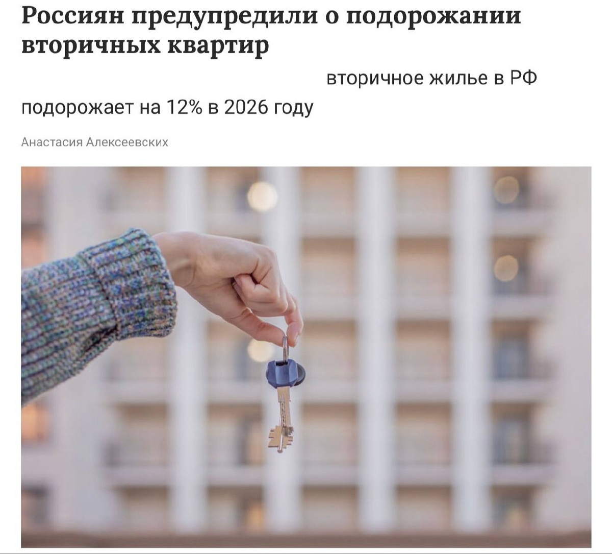 Привет, друзья! Сегодня поговорим о том, что ждёт рынок вторичного жилья в России. Эксперты предупреждают: цены могут вырасти на 12% уже в 2026 году. Звучит как отличный повод для радости, если вы собираетесь покупать квартиру, правда? Но давайте разберёмся, почему так происходит и что это значит для нас с вами. Всё дело в высоком спросе. Люди стали чаще покупать квартиры, и это неудивительно: ключевая ставка снижается, а значит, кредиты становятся доступнее. Казалось бы, должно быть хорошо и продавцам, и покупателям. Но не спешите радоваться. Количество квартир на продажу остаётся на прежнем уровне, а это значит, что рост цен может сделать жильё менее доступным для тех, кто хочет купить его не в ипотеку. Что всё это значит для нас? Возможно, в ближайшие годы покупка квартиры станет ещё более сложной задачей. А что вы думаете? Как считаете, стоит ли инвестировать в недвижимость сейчас, или лучше подождать? Подписывайтесь на «The Collective», чтобы ничего не пропустить!