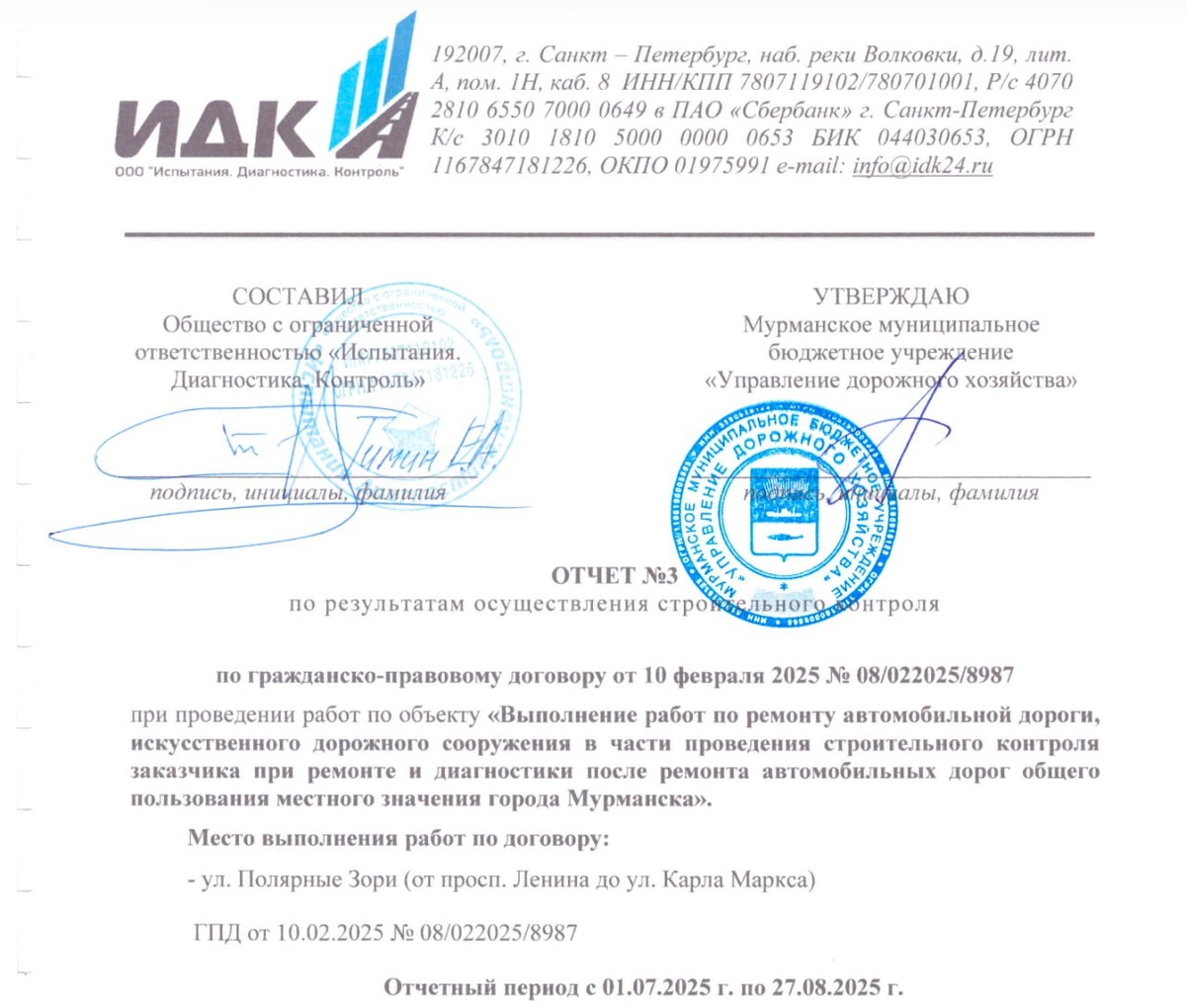 Изучили отчёт о строительном контроле за реконструкцией улицы Полярные Зори в Мурманске