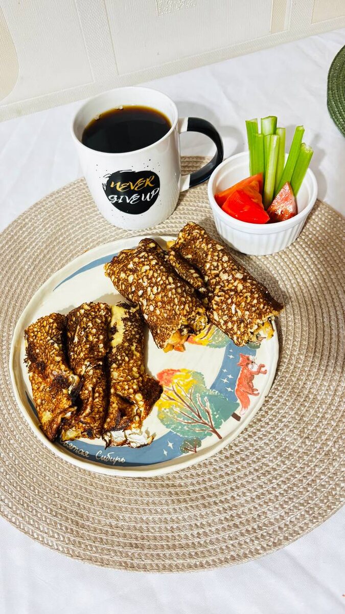 нам понадобится маленькая упаковка ряженки (обычно 300 грамм), два яйца, мука, сахар, соль, разрыхлитель, обезжиренный мягкий творог савушкин одна упаковка (можно не добавлять, но я лично упоролась по белку), кипяток и растительное масло.
