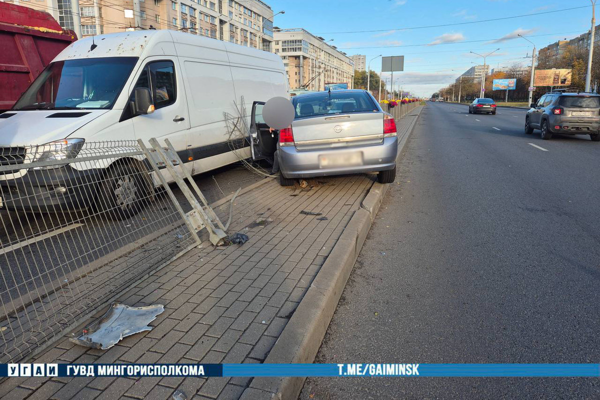 Сегодня утром вблизи пересечения улицы Плеханова и проспекта Рокоссовского в Минске произошла авария. Автомобиль Opel пробил разделительное ограждение, частично оказавшись на встречной полосе. Это попало на видео. — По предварительной информации, 43-летний водитель Opel при повороте с улицы Плеханова на проспект Рокоссовского отвлеклась от управления, в результате чего выехала за пределы проезжей части и совершила наезд на разделительное ограждение, которое повредило встречный грузовой автомобиль Mercedes, — рассказали в ГАИ Минска. Сообщается, что в результате ДТП никто не пострадал. Знакомы с ситуацией? Пишите нам: pv@onliner.by или t.me/vitpetrovich Есть о чем рассказать? Пишите в наш телеграм-бот. Это анонимно
