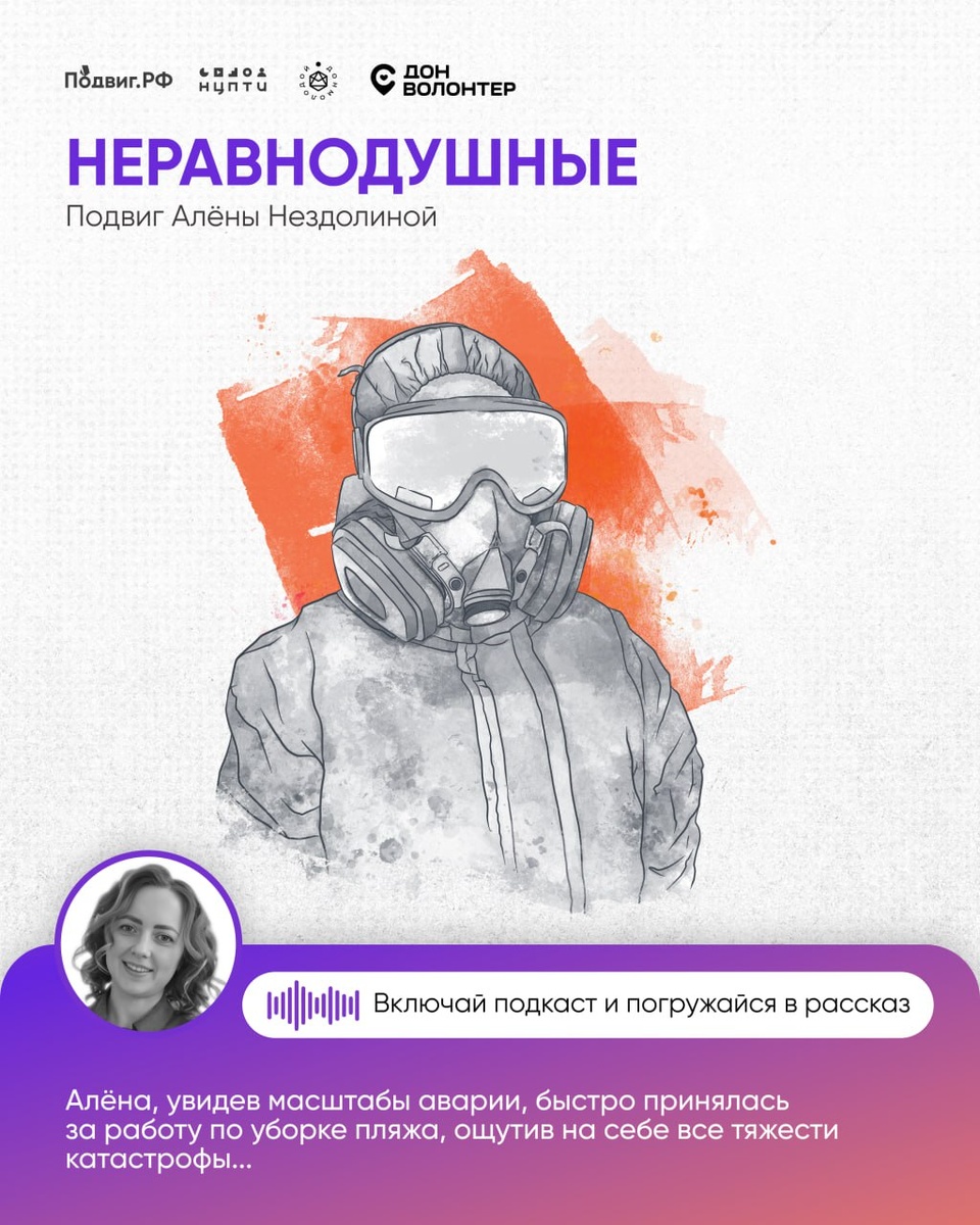 Неравнодушные люди способны поменять мир к лучшему Алёна проехала сама на машине более 600 километров, чтобы вступить в ряды волонтеров на Черном море. Она заранее купила всё необходимое: сапоги, защитные костюмы и маски, перчатки. Девушка работала три дня на побережье, убирая мазут на разных участках пляжа. И хотя она всегда была в средствах защиты, всё равно получила отравление: у нее были высокое давление, головная боль и горечь во рту. Читать художественный рассказ о подвиге Алёны Медиапродукт создан в рамках акции «Расскажи о подвиге волонтера» совместно с ДонВолонтер и ДонМолодой. 🧡Подвиг.РФ | Поддержать канал голосом #подвигрф #подвигрф_про_людей