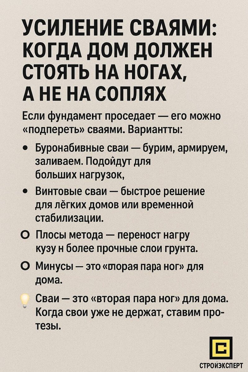 🦶 Усиление сваями: когда дом должен стоять на ногах, а не на соплях