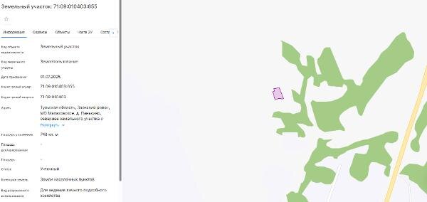 Название: продажа земельного участка из земель населенных пунктов с кадастровым номером 71:09:010403:655, площадь 748 кв