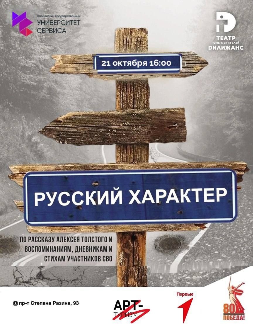 В рамках проектного интенсива «Арт-туризм: маршруты памяти» приглашаем студентов Университета сервиса на спектакль «Русский характер» в театре «Дилижанс»!