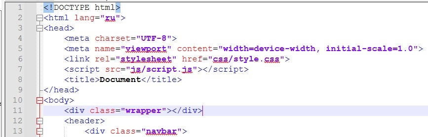 Теперь все элементы страницы находятся в главном диве врапер, как это и должно быть. Это я сделал подготовку страницы к добавлению футера