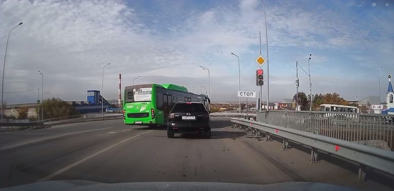 Лихач на НефАЗе. Опасный маневр водителя автобуса в Оренбурге попал на видео