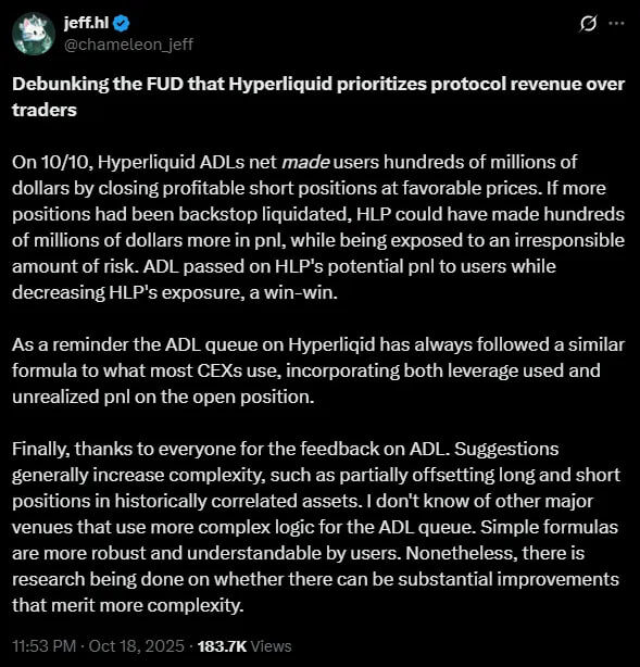 🔸Основатель Hyperliquid опроверг FUD о приоритете доходов протокола над интересами трейдеров