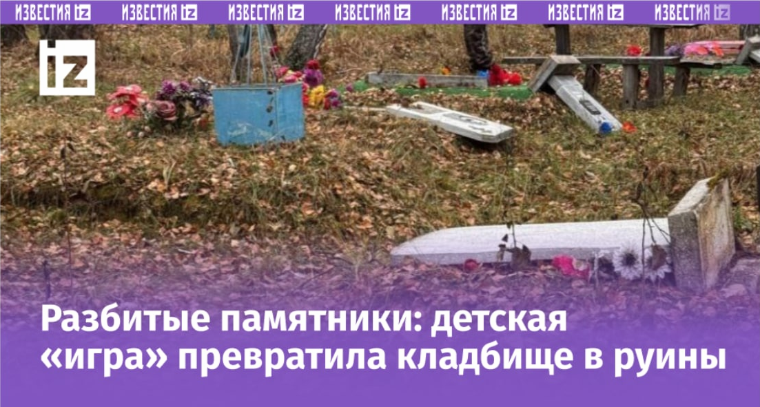 Несовершеннолетние хулиганы повредили более 80 надгробных памятников на кладбище в селе Заливино в Новосибирской области. Об этом сообщили в местной прокуратуре. Предварительно, 15 октября в вандализме участвовали трое детей — 2016 и 2018 годов рождения. После происшествия прокуратура организовала уголовно-процессуальную проверку, сообщается в Telegram-канале РЕН ТВ. "Разрушены памятники, выдернуты кресты. Люди сегодня собрались на сход, и вот такое у нас горе", — рассказал один из очевидцев в опубликованном в соцсетях видео.