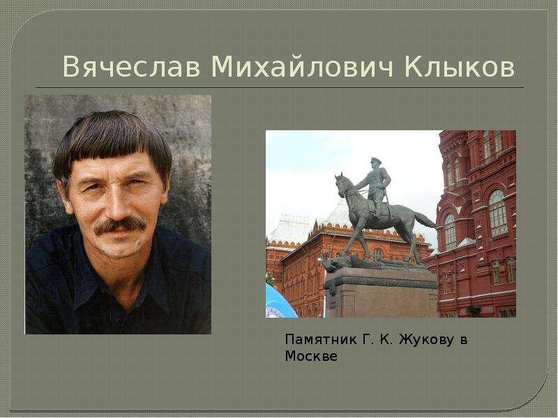 Вся жизнь Вячеслава Клыкова - беззаветная, негасимая любовь к своему Отечеству. Он всей душой искренне болел за Родину, за свой, в одночасье ставшим изгоем в собственном доме, народ. Мучился, почти физически, от унижения и оскорбления нации, её святынь и достояний; страдал от разграбления и разорения некогда великой Державы. Оттого-то, одержимо, сутками напролет, работал, работал, создавая образы великих людей России, тем самым напоминая современникам о могучем, непобедимом русском духе...