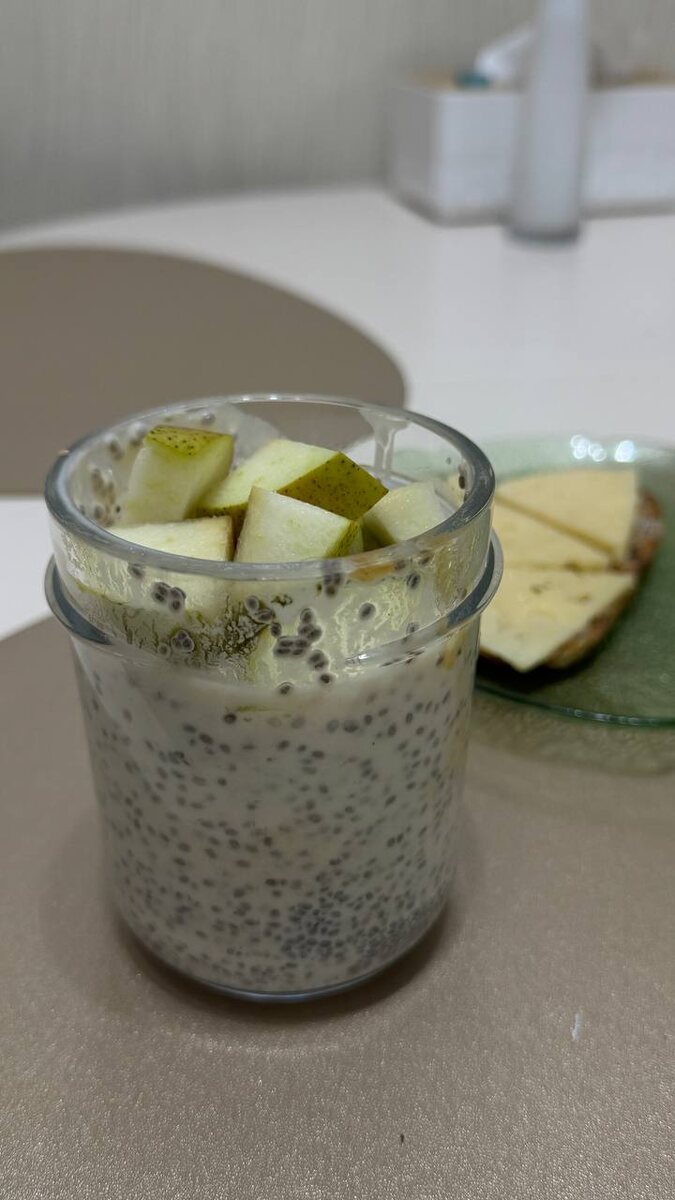 С вечера заливаем семена ряженкой и я добавила для сладости пару ложек абрикосового варенья.