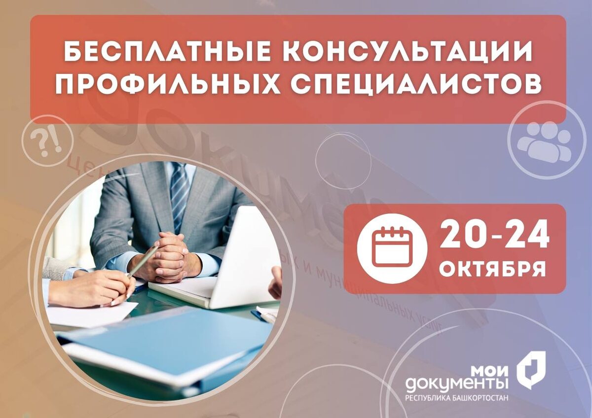 Бесплатные консультации профильных специалистов в офисах МФЦ Башкортостана с 20 октября по 24 октября