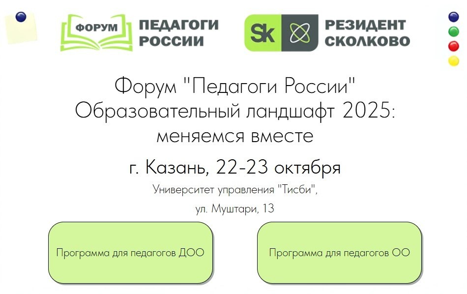 Приглашаем Вас принять участие в форуме для педагогов и родителей "Педагоги России. Образовательный ландшафт 2025: меняемся вместе", который пройдет 22-23 октября 2025 г. в Казани, в университете управления "Тисби" (ул. Муштари, 13).