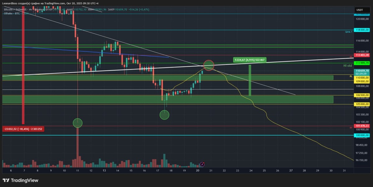 #мнениепорынку 🕯🕯🕯 ⚠️График BTC пока четко отрабатывает сценарий с реакцией на промежуточный блок и ретест трендовой сверху, которая делит свою текущую зону сопротивления с уровнем Old HI 112К, надеюсь вы коллеги, прекрасно помните об этом!!? ⚠️Таким, образом, если цене удается выпрыгнуть вверх за сопротивления и закрыть там дневной ТФ, можно будет ожидать продолжение роста в сторону 118К. Пока же, а именно сегодня, внимание должно быть обращено на обозначенную зону сопротивления, которая достаточно мощная и имеет подтверждение закрытия недельной красной свечи!! P.s. прямо сейчас мы наблюдаем отскоки альтов параллельно росту BTC. Помним, что сегодня понедельник = день красных свечей, традиционно!! Глядя локально на рынок, можно полагать, что традиция нарушена, наконец-то? Но, именно ближайшая зона сопротивления BTC может подтвердить незыблемость традиции = будьте аккуратны, коллеги!! В целом, мне нравится, как закрылись последние пару дней по альтам, не смотря на то, что неделя