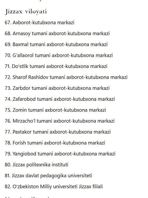 Китоблар карвони биз томон йўлга чиқди “Ёшлар учун минг китоб” лойиҳаси доирасида 140 дан ортиқ мутахассис томонидан тайёрланган дунёга машҳур китоблар тўплами юртимиз бўйлаб 303 та муассаса томон йўлга олди. Давлатимиз раҳбари қарорига мувофиқ, китоблар ахборот-кутубхона муассасаларига, шунингдек, уларнинг электрон нусхалари китобхонлар кенг фойдаланиши учун Ўзбекистон Миллий кутубхонасига ва Фанлар Академияси тизимидаги кутубхоналарга 27 номдаги китоб беғараз тақдим этилади. Жиззах вилоятида бу китоблар юқоридаги манзилларга етказилади. 👆 Каналимизга обуна бўлинг ва энг сўнгги янгиликларни кузатиб боринг Jizzaxnews |Тelegram | Facebook | Dzen | YouTubе