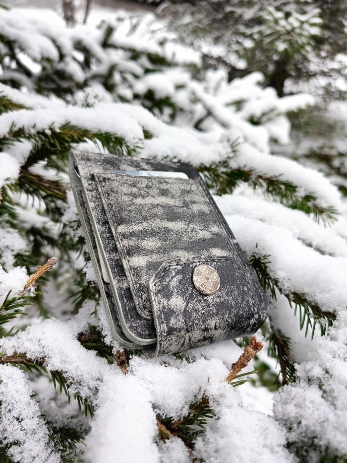 Приветствую, друг, очередной зажим для купюр из интересной кожи, увидел и в голове родилась мысль, что подобная расцветка мне напоминает скалистые заснеженные земли и мелодии скандинавских племен. Модель выкройки собирал из понравившихся элементов у разных увиденных изделий, так что это мой личный Франкенштейн. Габариты 12х7.8 см По функционалу - как полноценный бифолд: купюры, 5 карт, монеты и потайной отдел. По классике полностью прошит в ручную седельным швом шаг пробойника 4 мм Толщина кожи 1.2-1.4 мм, нить серая галасес 0, 55 мм Металическая фурнитура и обработка смесью восков для защиты от влаги. Пост автора Androgen22. Читать комментарии на Пикабу.