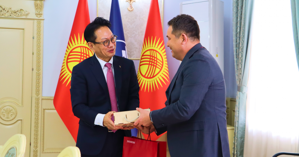 Бишкекте Кыргызстандын экономика министри Бакыт Сыдыков менен түштүк кореялык KT&G корпорациясынын президенти Банг Кен Ман жолугушуп, Кыргызстандагы инвестицияларды кеңейтүү мүмкүнчүлүктөрүн талкуулашты. 🌱 Бишкекте 15-октябрда экономика жана коммерция министри Бакыт Сыдыков менен Түштүк Кореянын KT&G корпорациясынын президенти Банг Кен Ман жолугушту. Жолугушуунун жүрүшүндө тараптар KT&Gнин Кыргызстандагы инвестицияларын кеңейтүү мүмкүнчүлүктөрүн, анын ичинде фармацевтика жана косметика тармагындагы жогорку технологиялуу долбоорлорду, ошондой эле кыймылсыз мүлк инвестицияларын талкуулашты. 💊 Кыргызстанда уникалдуу дары чөптөр жана ак бал сыяктуу бай табигый ресурстар бар, бул фармацевтика өндүрүшү үчүн чоң мүмкүнчүлүктөрдү түзөт. Министр Сыдыков Түштүк Корея компаниясын өлкөнүн фармацевтика секторуна инвестиция салууга чакырды. 🏗 KT&G корпорациясы Кыргызстандагы ишмердүүлүгүн кеңейтүүгө кызыкдар экенин билдирди, бул эки тараптуу өнөктөштүктүн жаңы баскычына жол ачат. 🤝 Жолугушуу Кыр