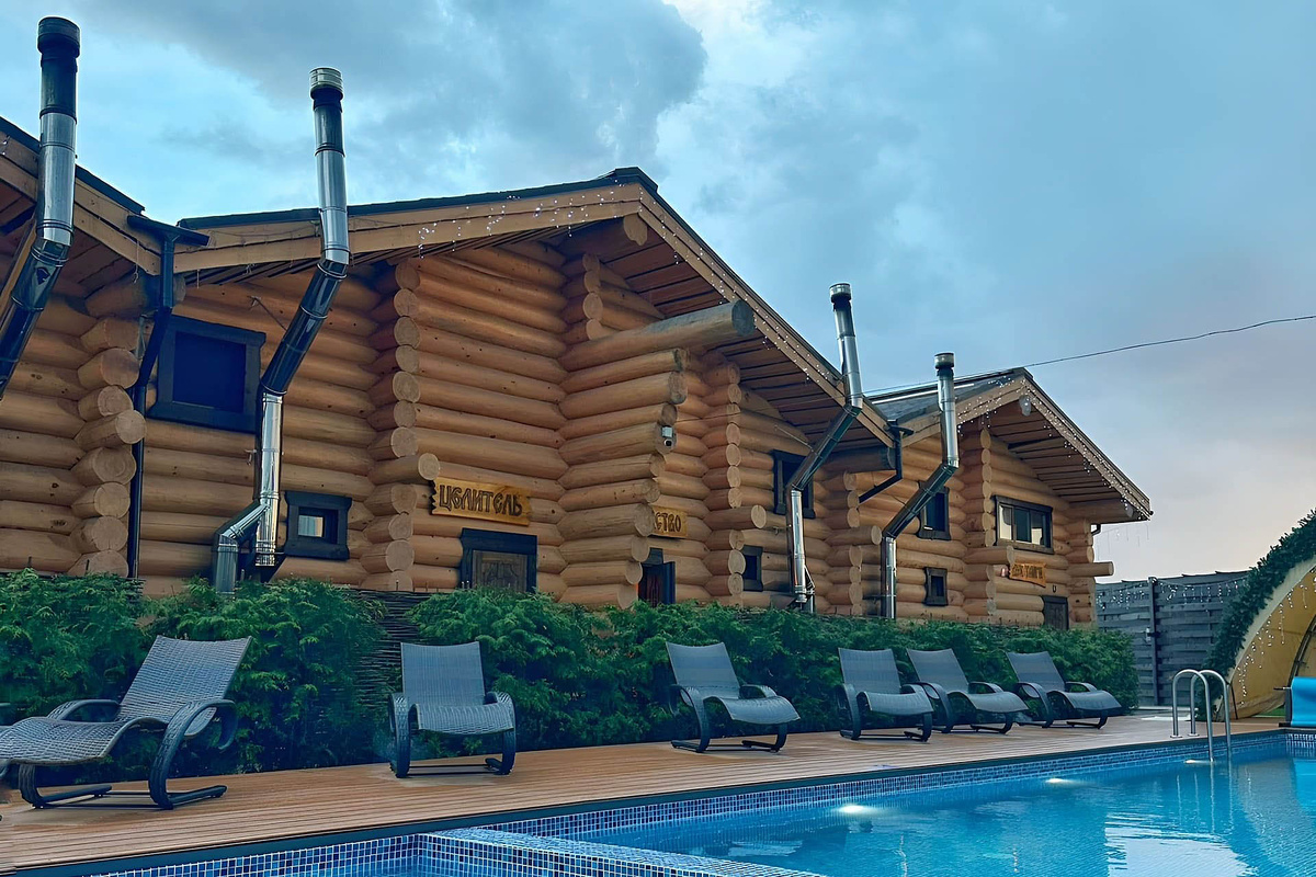 Поработали с территорией парк-отеля, чтобы максимально заинтересовать посетителей. Для улучшения качества отдыха их ждут водные процедуры и уличные площадки: бассейн + чан с подогретой водой, патио вокруг бассейна, купель, уличная веранда, беседки с мангальной зоной, настоящий сеновал.