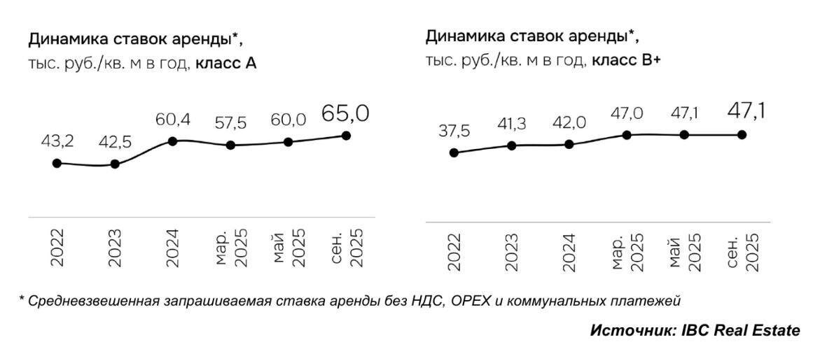 Ситуация на рынке офисной недвижимости Москва-Сити По данным аналитиков IBC Real Estate, в сентябре 2025 года на рынке офисной недвижимости Москва-Сити наблюдаются следующие тенденции: Уровень вакантности достиг 3,5%, что является первым превышением отметки в 2% с 2023 года. Годовой рост составил 1,6 процентных пункта. Основной причиной увеличения вакантности стало открытие в третьем квартале 2025 года башни Space в составе проекта iCITY, где около 40% офисных площадей остаются свободными. Несмотря на рост вакантности, рынок демонстрирует положительную динамику в части арендных ставок: В сегменте класса А: Средневзвешенная ставка аренды достигла 65 000 рублей за кв. м в год (без учета НДС и OPEX) Годовой рост составил 49% В сегменте класса В+: Средневзвешенная ставка аренды — 47 000 рублей за кв. м в год Показатель вырос на 12% по сравнению с сентябрем 2024 года 👉Следите за новостями на нашем канале: @Commers_Estate ✔️Реализуйте свою недвижимость тут: @Commers_Estate_ads #аналит