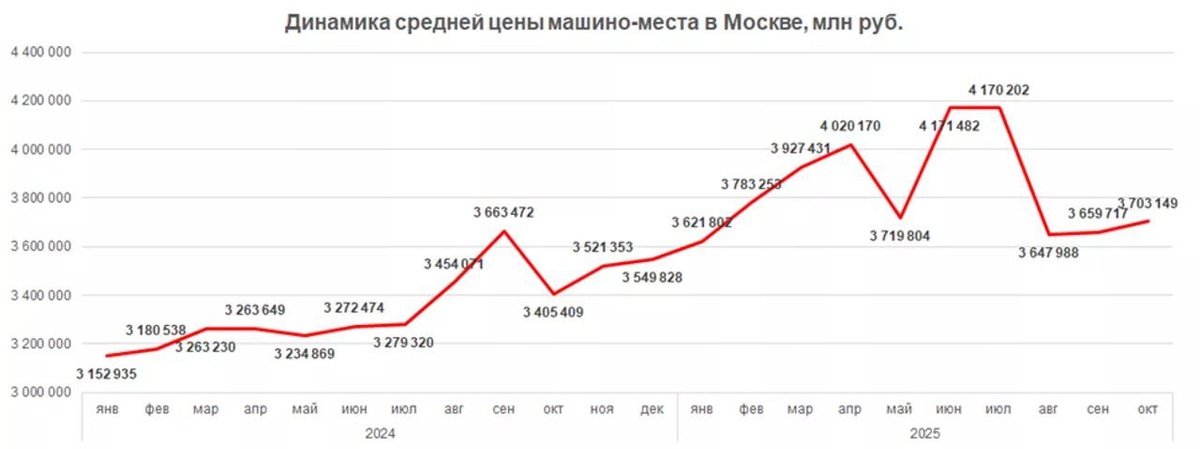 С начала 2025 года стоимость машино-мест в столице выросла в среднем на 18% — до 240 тыс за квадратный метр.