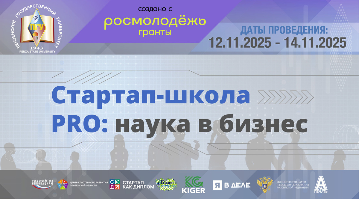 Пензенский государственный университет начинает приёмную кампании проектного решения «Стартап-школа PRO: наука в бизнес». С 12 по 14 ноября 2025 года в Пензенском государственном университете состоится региональная стартап-школа «PRO: наука в бизнес». Она включена в ежегодный цикл мероприятий ПГУ по реализации федеральных программ «Стартап как диплом» и «Студенческий стартап». Организатор стартап-школы — Студенческий научно-производственный бизнес-инкубатор (СНПБИ) Научно-исследовательского института фундаментальных и прикладных исследований (НИИ ФиПИ). Стартап-школа «PRO: наука в бизнес» — ключевый элемент экосистемы молодёжного предпринимательства. Напомним, мероприятие проводится в рамках проекта «ПГУ — центр притяжения молодёжи», ставшего победителем Всероссийского конкурса молодежных проектов среди образовательных организаций высшего образования, при финансовой поддержке Федерального агентства по делам молодёжи (Росмолодёжь). Программа стартап-школы направлена на создание условий