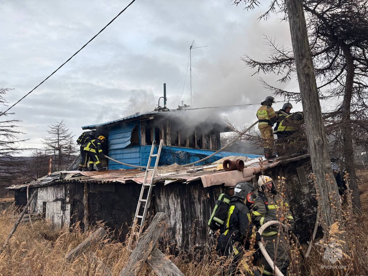 ❗❗❗ Огнеборцы тушат пожар в двухэтажном строении на Еловом проезде в Магадане.
