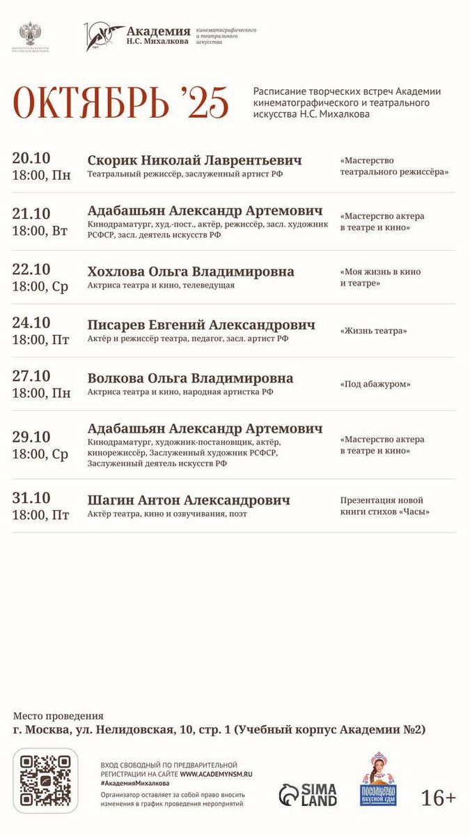 Расписание творческих встреч Академии в октябре-ноябре 🍂