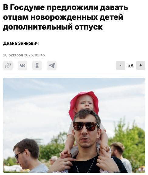Дополнительный отпуск для отцов новорожденных детей хотят ввести в России. Инициативу выдвинули в Госдуме. Получить неделю отпуска можно будет по письменному заявлению один раз в течение года со дня рождения ребенка. Денежная компенсация за неиспользованные дни не будет предусмотрена 👉🏻Новости №1 в Ростове 💌Прислать новость/фото Ростов Папа теперь в Ⓜ️🅰️❌