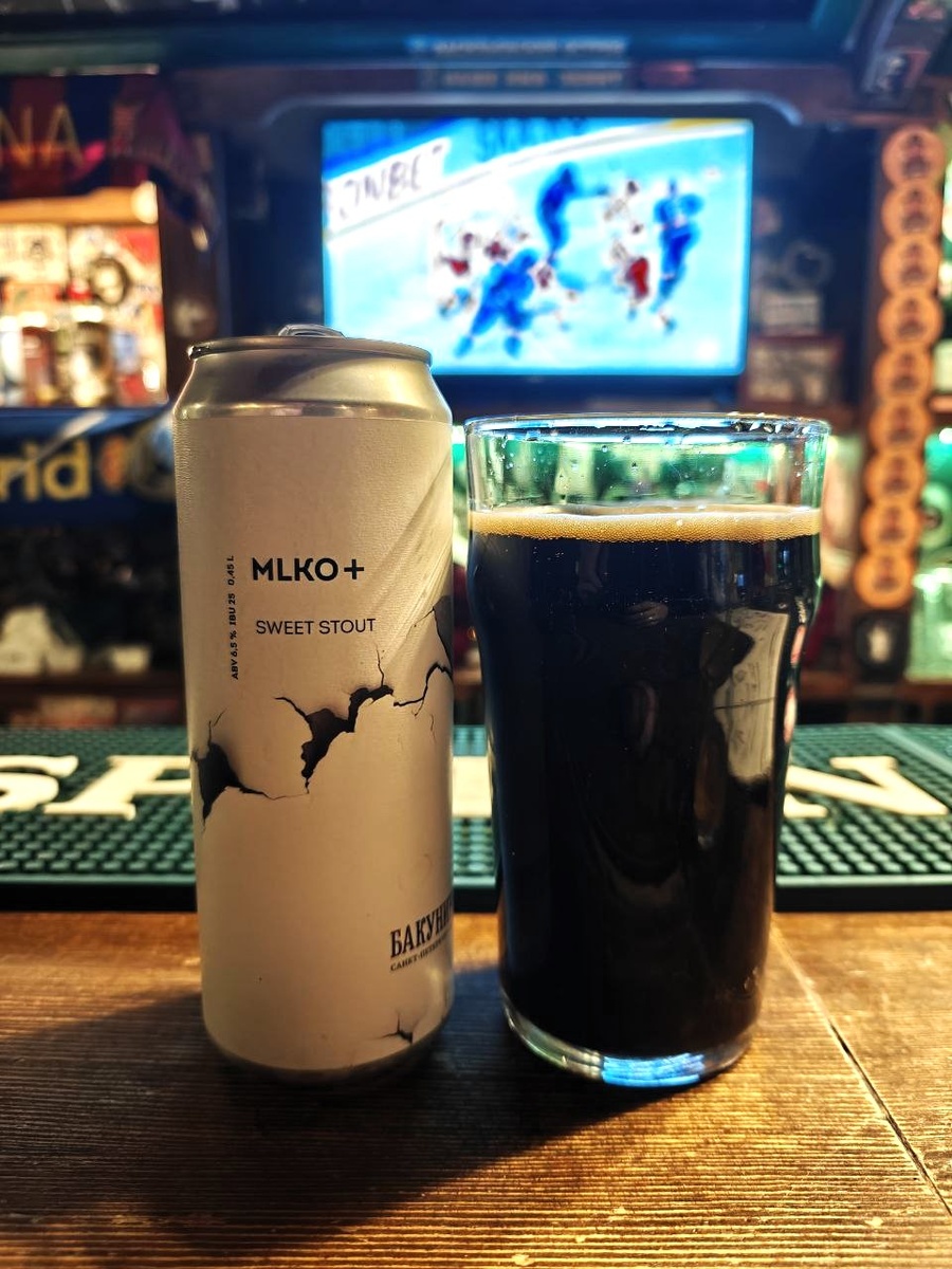 Всем привет! Извиняюсь что с таким диким опозданием, но обзор у вас. Прошу понять и простить. В этот раз на пробе из известного питерского бара O'Hooligans молочный крафтовый стаут от питерской пивоварни Бакунин, которая начала свою историю в одноименном питерском кафе. Так как про молочный стаут я уже писал, а про пивоварню крайне мало полезной информации кроме того, что история началась где-то в 2013 году с встречи единомышленников (Александра Романенко, Владимира Наумкина и Юрия Митина) в кафе Бакунин и что в конечном итоге доросли до компании с 200 видами выпускаемой продукции, предлагаю перейти сразу к пенному. Данный стаут классифицируется как пивной напиток непастеризованный нефильтрованный неосветленный с хорошей крепостью 6,5% и плотностью аж в 19%. Продается в банках по 0,5 л. с ценой в 200+ рублей. Дизайн крайне лаконичный, и странный ,как будто на банке отшелушивается белая краска а под ней черная краска и не понятно что это означает и что должно быть под ней. Срок годно