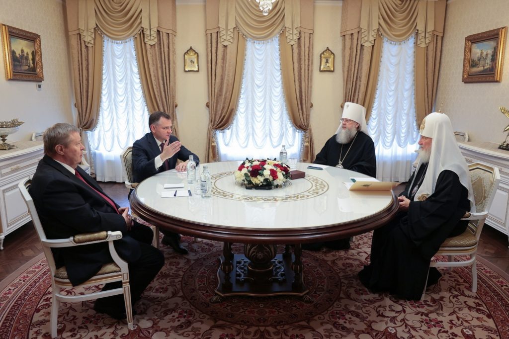 Святейший Патриарх Кирилл, прибывший в Ростовскую область, провёл в Ростове-на-Дону встречу с полномочным представителем Президента РФ в Южном федеральном округе Владимиром Устиновым и губернатором региона Юрием Слюсарем. В мероприятии также участвовал митрополит Ростовский и Новочеркасский Меркурий, глава Донской митрополии. Патриарх подчеркнул особую роль донской земли как оплота православия, отметив, что жители региона с детства впитывают дух патриотизма. «Бывшее пограничье сейчас несет на себе очень большую ответственность за безопасность страны. Здесь понимаешь, насколько важны традиции патриотического служения, верности Отечеству для решения современных задач. И нужно, чтобы в нашей молодежи укоренялись ценности, сформированные не одним поколением людей, которые здесь служили вере православной и Отечеству», – сказал Патриарх Кирилл. Юрий Слюсарь поблагодарил предстоятеля Русской православной церкви за внимание и духовную поддержку жителей региона. «Ростовская область действительн