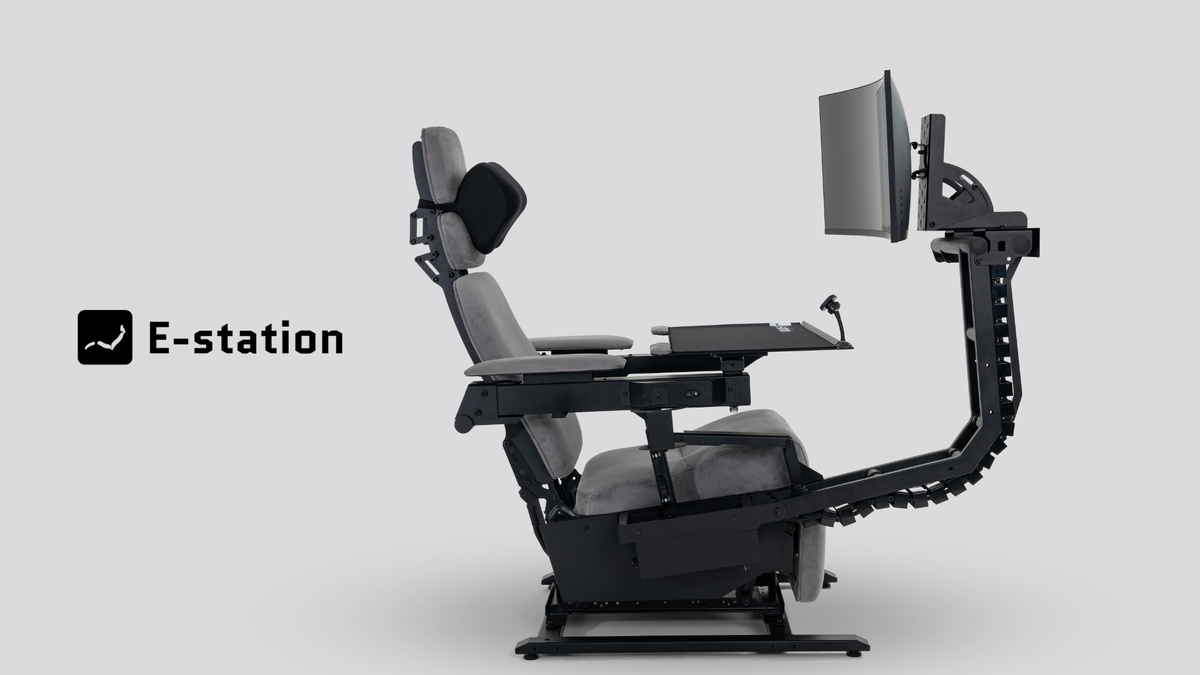 Киберстанция для работы лежа предлагает беспрецедентный уровень эргономики, позволяя вам работать в динамичном режиме, легко адаптируя положение тела. Нажимаете на кнопку – спинка кресла плавно откидывается, подножка поднимается, а экраны автоматически двигаются, сохраняя угол наклона для глаз и расстояние.